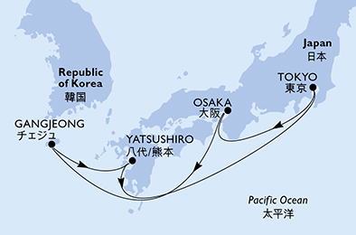 Bring the Far East closer with MSC Bellissima, sailing through Japan, Taiwan (China) and the Republic of Korea, and experience an enchanting blend of ancient traditions, vibrant cities and pristine beaches.
