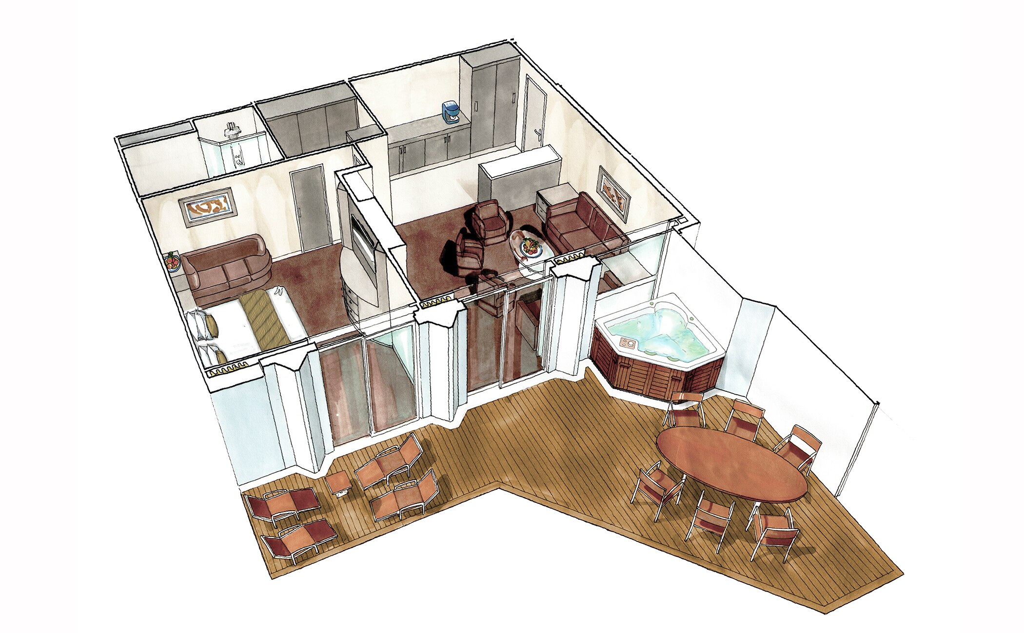 Make your cruise memorable enjoying an elegant suite with more living space, a large private balcony, and exclusive benefits.